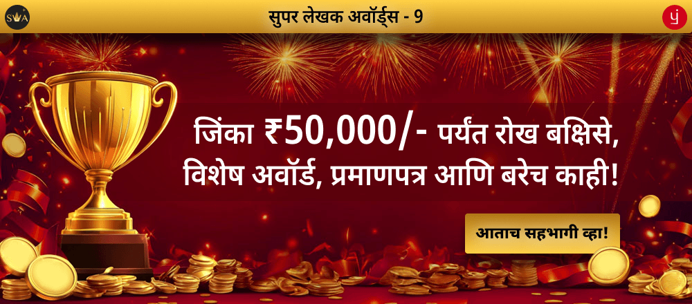 → 4 ते 10 क्रमांकाचे वेजेते: ₹3000रोख बक्षीस + ईमेलद्वारे विजेते प्रमाणपत्र + सोशल मीडियावर खास स्पॉटलाइट 'लेखक पोस्ट'